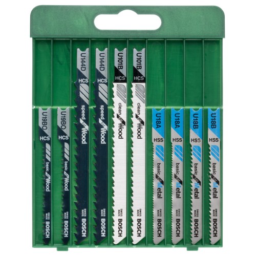 Set de 10 hojas de sierra de calar vástago en UU 101 B (2x); U 144 D (2x); U 19 BO (2x); U 18 A (2x); U 18 B (2x)