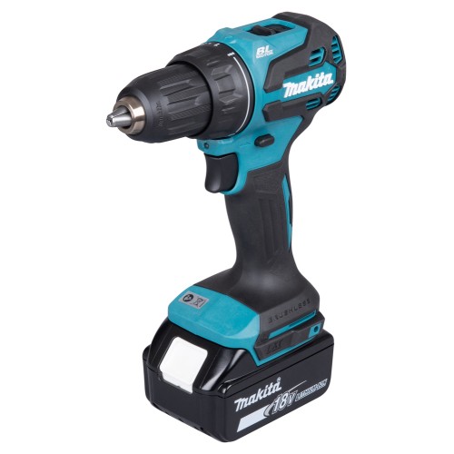 Taladro atornillador a batería LXT® equipado con un potente motor sin escobillas.DescripciónPotente máquina sin escobillas para atornillar y taladrar con dos marchas para necesidades profesionales. El par máximo es de 65 Nm. La máquina es ideal para instaladores, trabajadores de mantenimiento o constructores. Un eficiente doble LED ilumina el área de trabajo. Batería Basic 2,0Ah, cargador y maletín PVC.