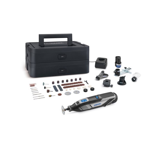 - Obtén la potencia necesaria para rendir al máximo con la Dremel 8240 con batería, una herramienta potente y portátil con la que siempre tendrás el control. Obtendrás la misma potencia que con la Dremel 4250 con cable, pero sin necesidad de enchufes. Con esta compacta pero potente herramienta, disfrutarás de una gran autonomía gracias a su batería de 2 Ah.